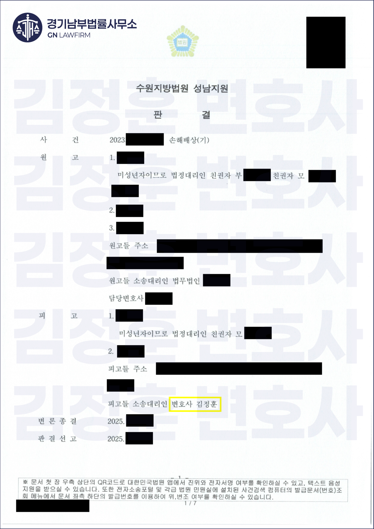 사업자 등록번호 : 163-41-00658 대표변호사 : 김정훈