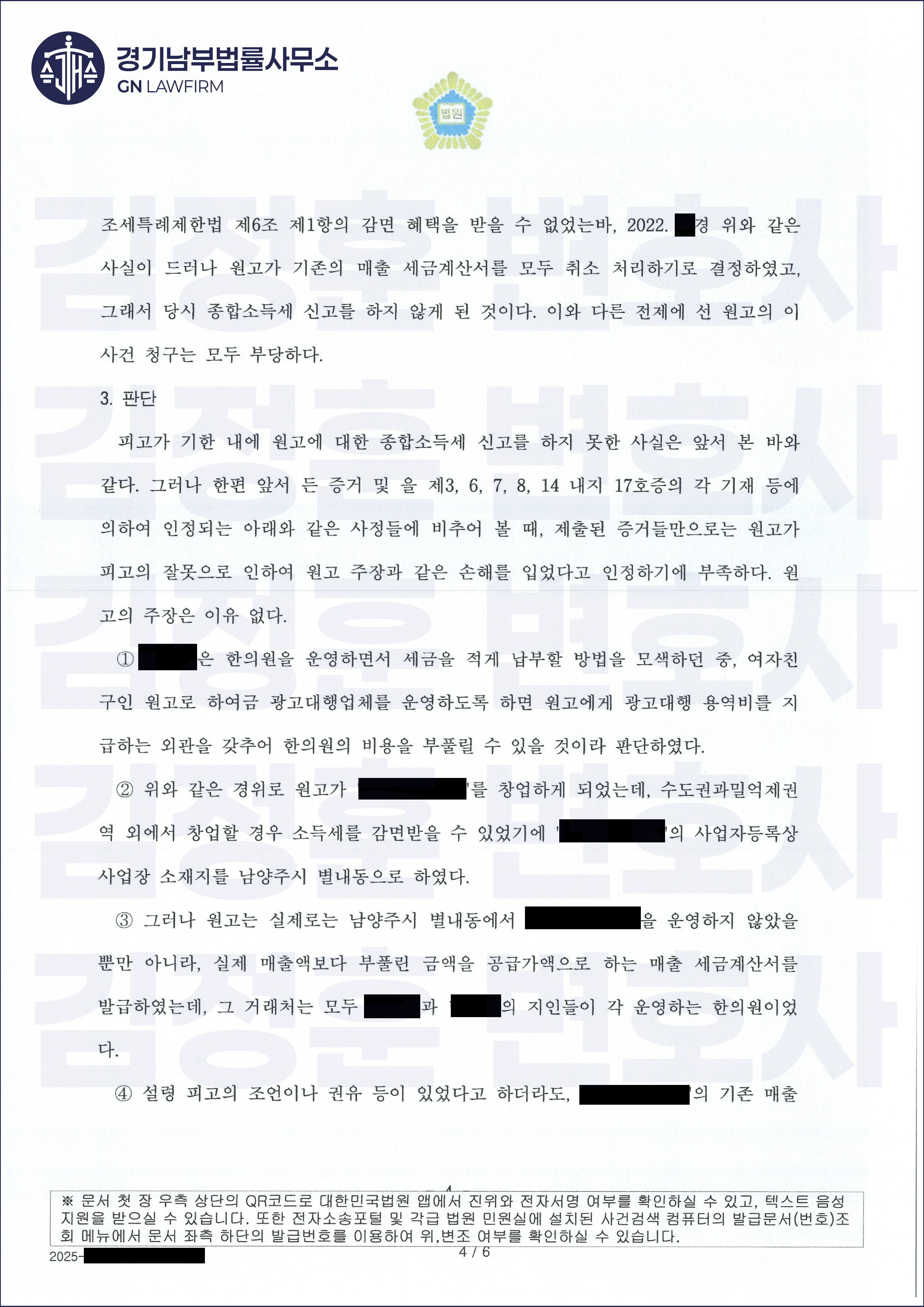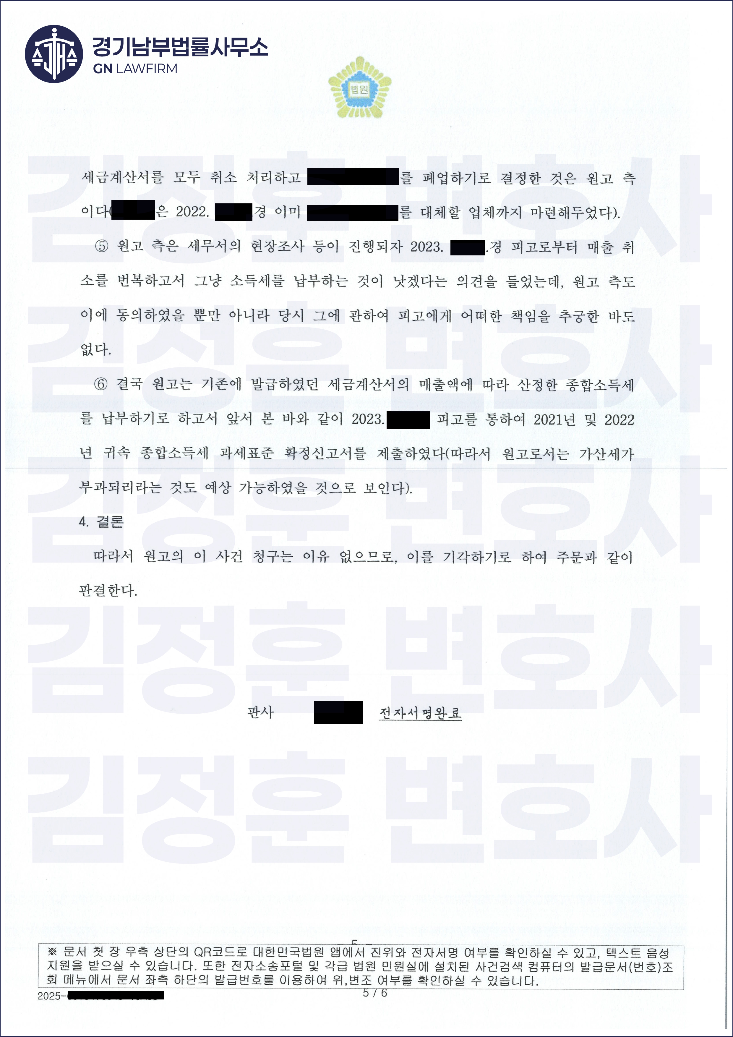 종합소득세 신고 지연 및 매출 세금계산서 취소 등은 원고 측의 결정 및 요청에 따라 이루어진 점을 강조하였습니다.