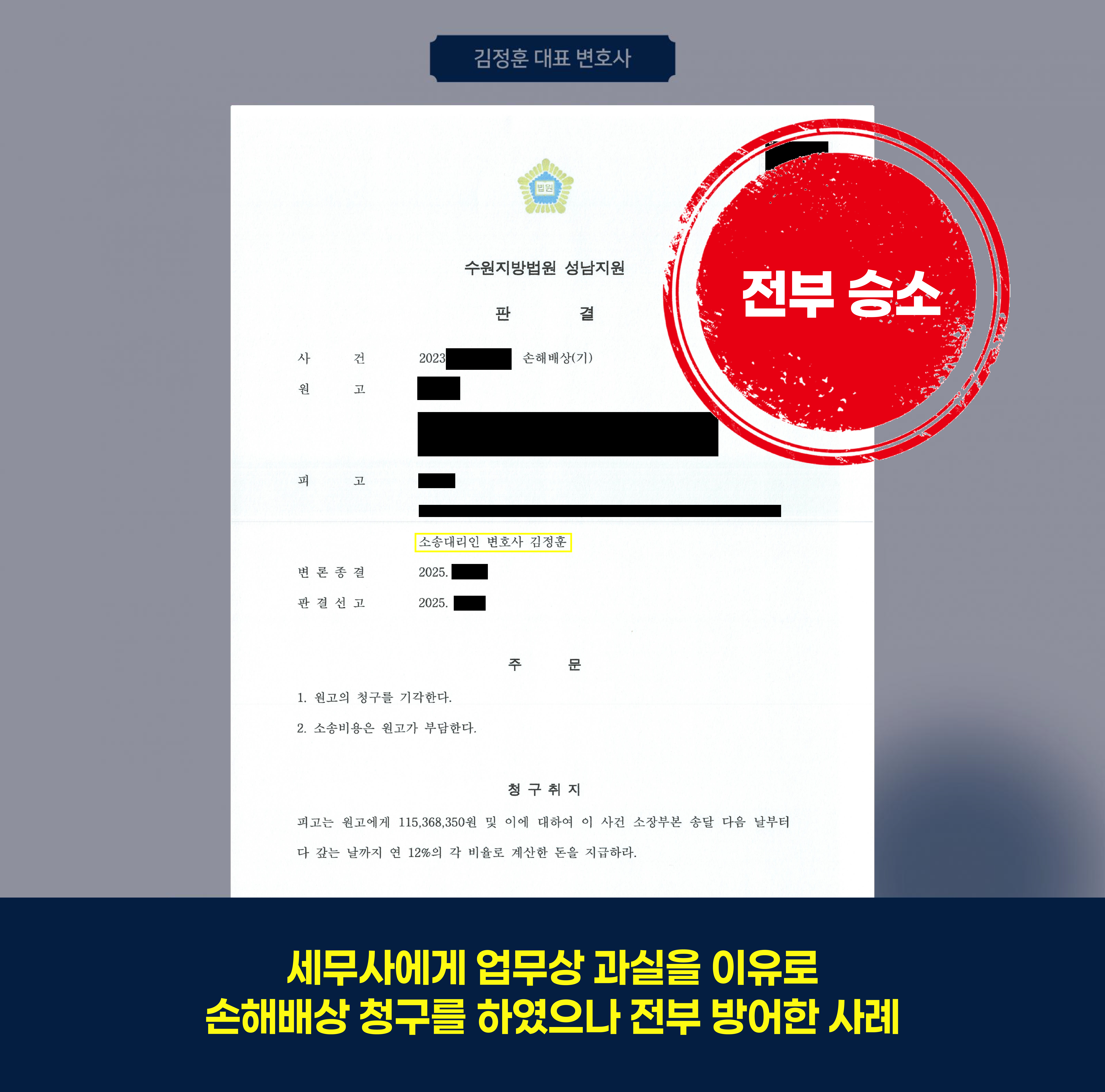 세무사에게 업무상 과실을 이유로 손해배상 청구를 하였으나 전부 방어한 사례