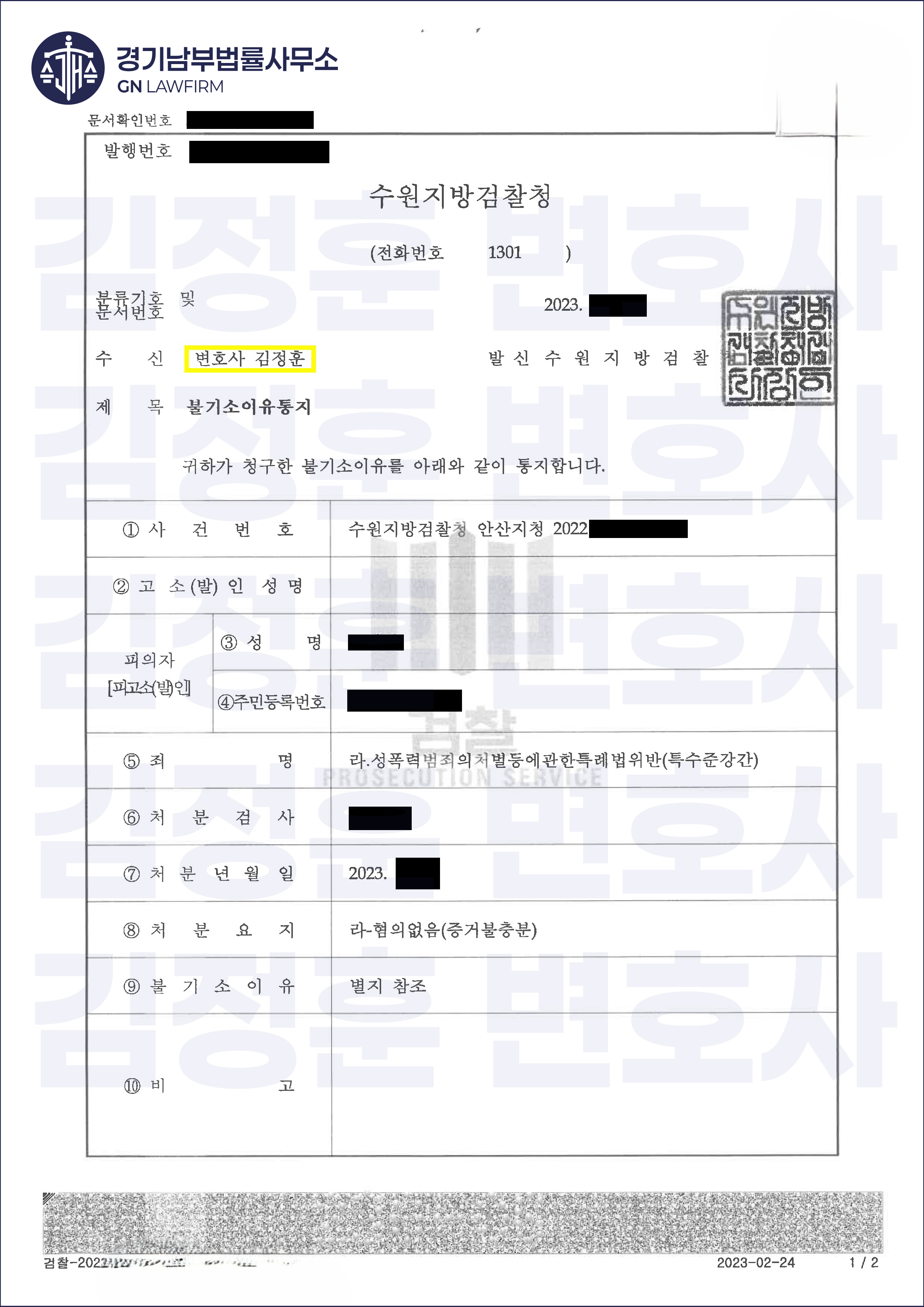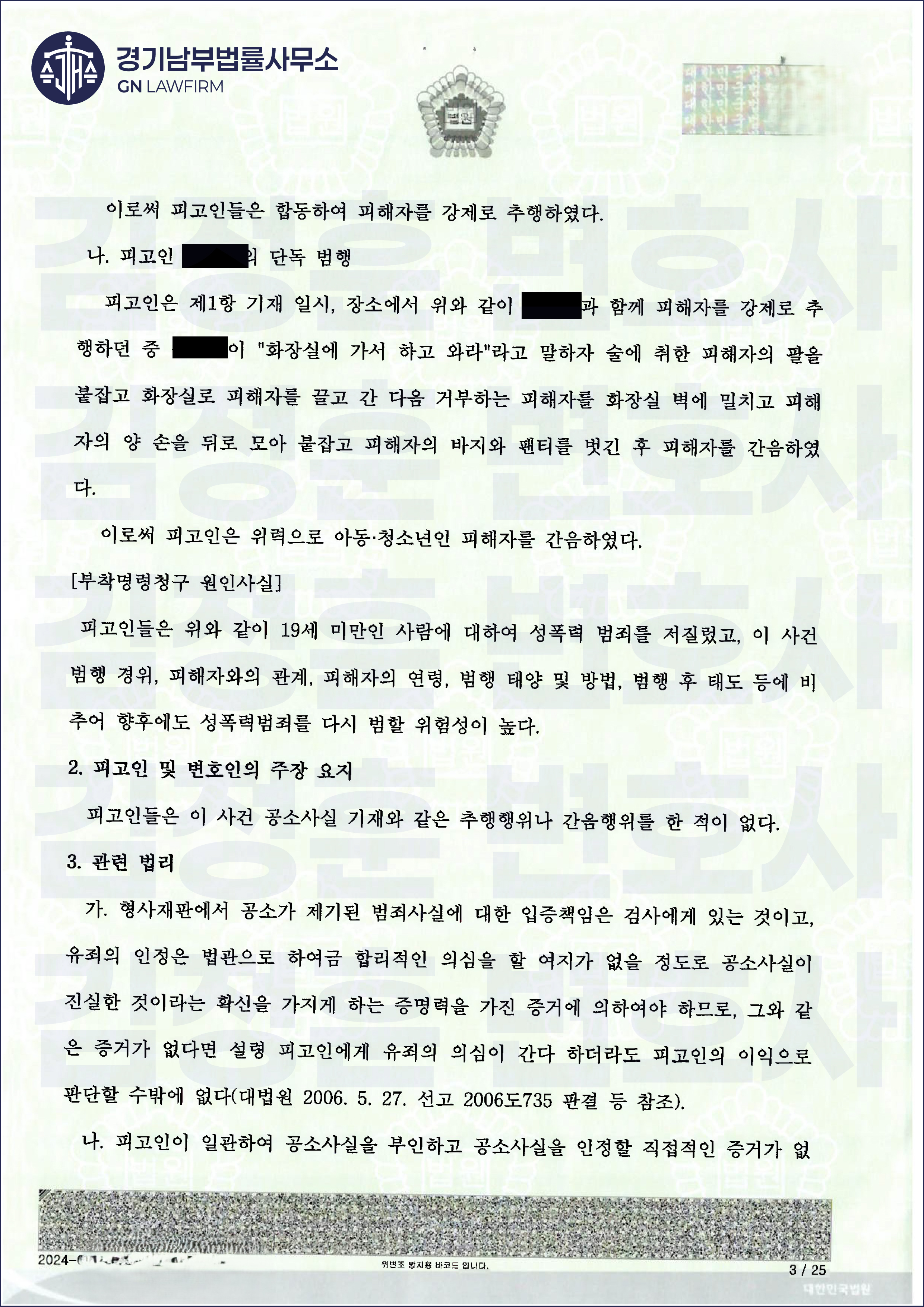 그 결과, 검찰은 김정훈 변호사의 주장을 받아들여 피의자3에 대해 '특수준강간 방조 혐의없음'으로 불기소 결정을 내렸습니다(경찰이 송치했음에도 검사가 불기소). 이는 공동정범의 한 축을 완벽하게 무너뜨린 결정적인 승리였습니다. '공범'이라는 딱지를 떼어낸 것은 물론, 향후 재판에서 그의 증언에 강력한 신빙성을 부여하는 결정적인 발판이 되었습니다.