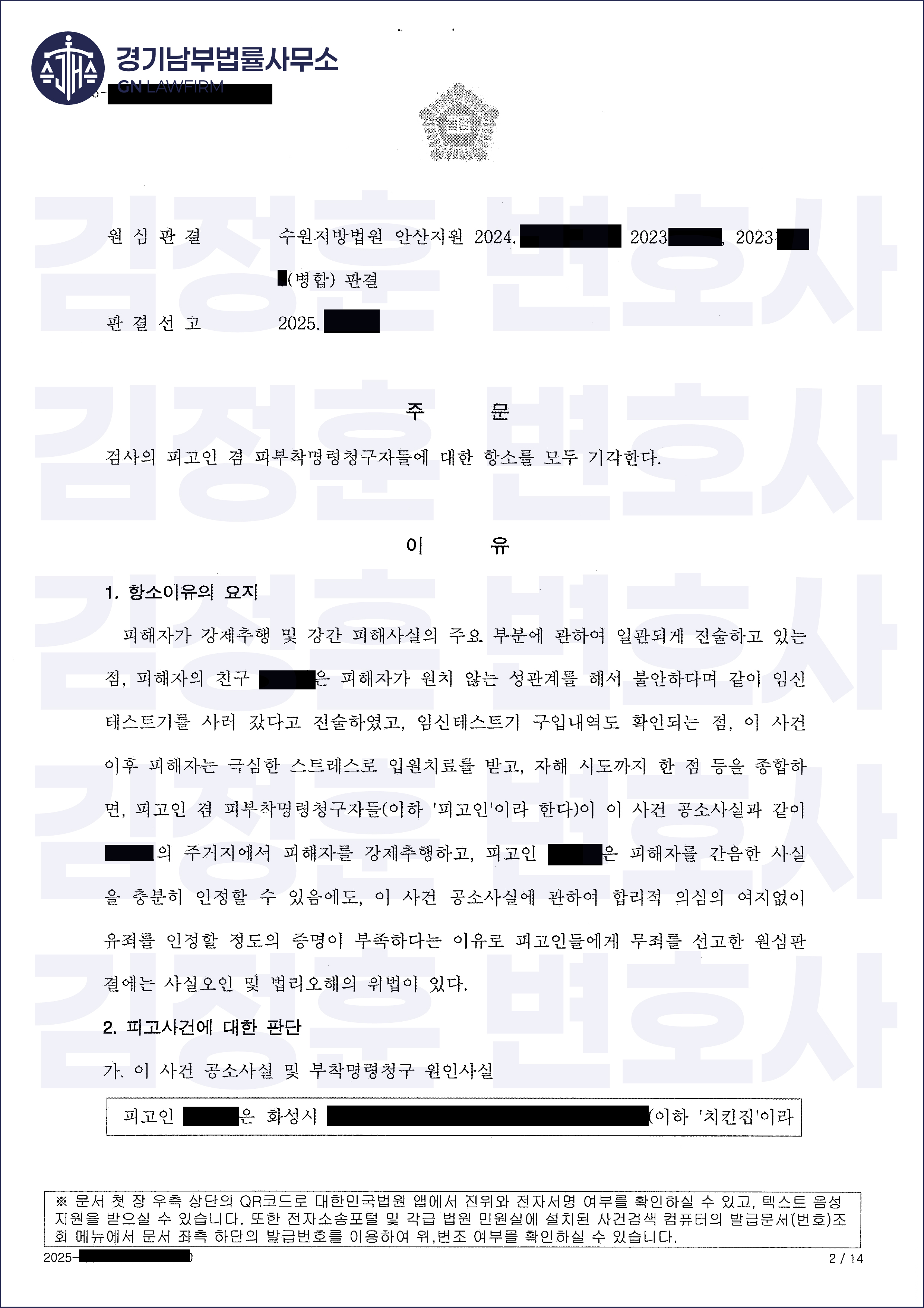 1심의 완벽한 무죄 판결. 그러나 길고 긴 싸움은 아직 끝나지 않았습니다. 검사는 판결에 불복하여 항소했고, 의뢰인들은 또다시 법정에 서야 하는 고통스러운 시간을 마주하게 되었습니다. 피해자는 이번에는 대형로펌 변호사로 교체하여 2심에 임했고, 설상가상으로 검찰은 항소심에서 1심에서는 제출되지 않았던 결정적인 증거라며, 피해자와 그 친구가 나눈 SNS 대화 내역 전체를 법정에 제출했습니다.