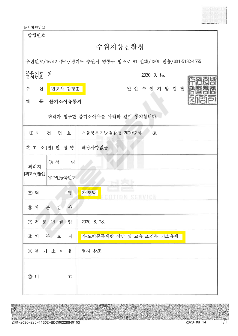 검사님께서는 이례적으로 자백한 피의자를 불러 도박의 횟수나 액수가 중해 결코 기소유예 사안은 아니라고 말씀하시면서도, "반성의 정도가 의견서 및 양형자료에서 보이니 또 한번 속아본다"고 말씀하시면서 기소유예라는 선처를 내려주셨습니다.
